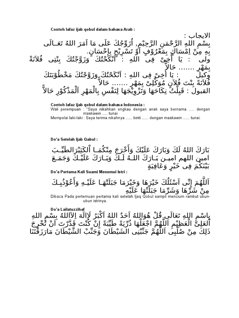 Dan semoga Allah selalu memberikan anugerah Setelah pengucapan Ijab dan Kabul tersebut maka akan dilanjutkan dengan ucapan para saksi yang hadir untuk mengesahkannya. Ijab Kabul yang benar. Bahasa indonesia bahasa arab bahasa inggris.
